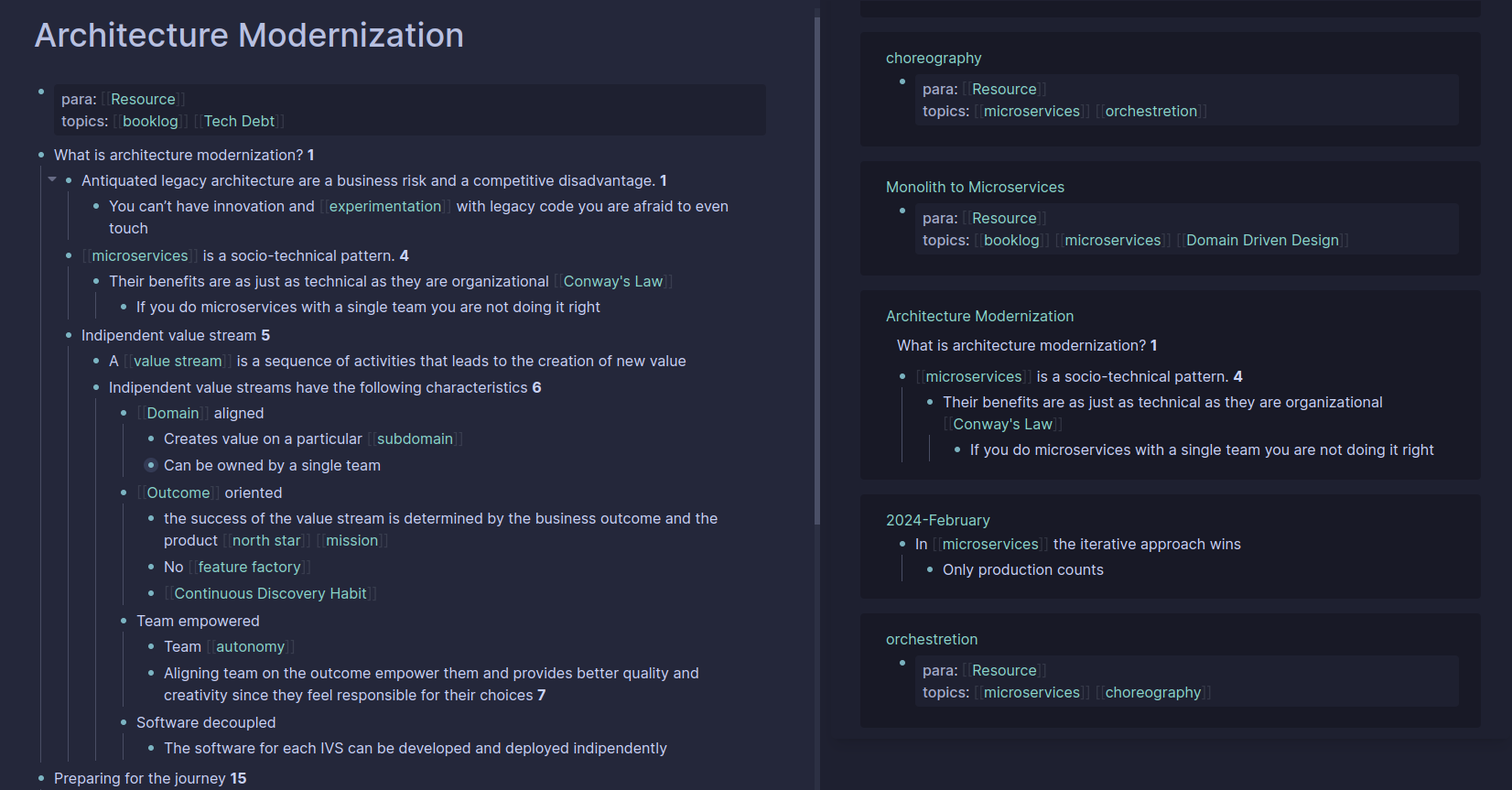 This is what happens when I click on the link microservices. I obtain all the notes I have linked to that topic.