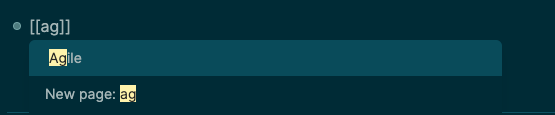 Or by using by wrapping one or more words into square brackets. This will open a popup with existing pages matching your typing and a button to create a new page.