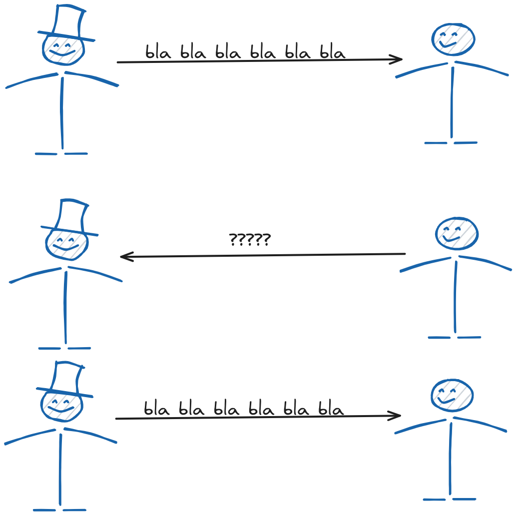 Let the speaker clarify the order of things and help them find possible weak spots in the process.